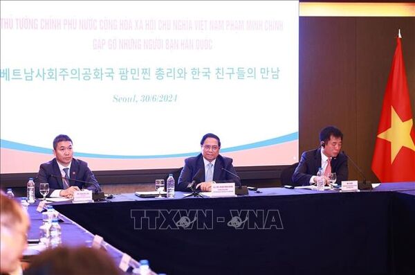 Theo đặc phái viên TTXVN, trong khuôn khổ chuyến thăm chính thức Hàn Quốc, sáng 2/7, tại Nhà Quốc hội Hàn Quốc, Thủ tướng Chính phủ Phạm Minh Chính đã có cuộc hội kiến Chủ tịch Quốc hội Hàn Quốc Woo Won-shik.
