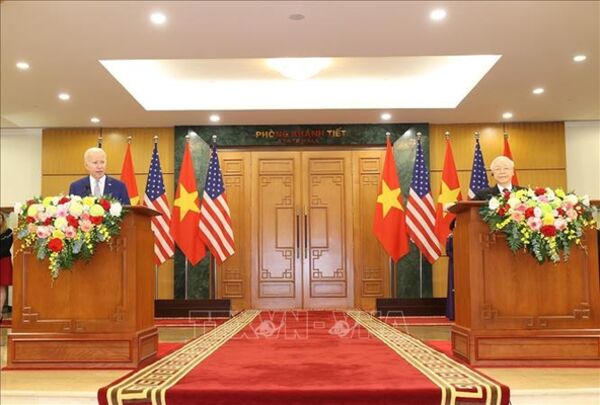 Hai Nhà Lãnh đạo bày tỏ vui mừng về những bước phát triển sâu rộng của quan hệ Việt Nam - Hoa Kỳ trên cả 3 bình diện song phương, khu vực và quốc tế sau gần 30 năm bình thường hóa quan hệ và 10 năm xác lập quan hệ Đối tác toàn diện, trong đó kinh tế - thương mại - đầu tư tiếp tục là điểm sáng và là động lực của quan hệ song phương với kim ngạch hai chiều đạt hơn 123 tỷ USD vào năm 2022. Hợp tác giữa hai nước về khoa học - công nghệ, giáo dục - đào tạo, an ninh - quốc phòng, khắc phục hậu quả chiến tranh, ứng phó với biến đổi khí hậu, giao lưu nhân dân… tiếp tục đạt nhiều tiến triển quan trọng.