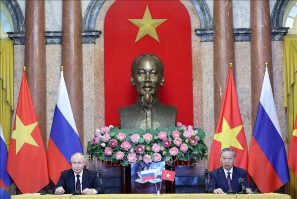 Tổng thống Vladimir Putin cảm ơn sự đón tiếp thân tình, trọng thị, cũng như những tình cảm tốt đẹp mà Lãnh đạo và nhân dân Việt Nam dành cho ông và Đoàn đại biểu cấp cao Nga, khẳng định Việt Nam là đối tác tin cậy và lâu đời, quan hệ hai nước đã vượt qua những chặng đường lâu dài và nhiều thử thách, đạt nhiều thành quả tích cực về chính trị - ngoại giao thông qua trao đổi đoàn cấp cao, quan hệ chính trị tin cậy giữa hai nước ngày càng được củng cố, là nền tảng thúc đẩy các lĩnh vực hợp tác khác, trong đó có kinh tế; thương mại tăng trưởng tích cực, nhiều dự án đầu tư thành công ở hai nước; hợp tác văn hóa, giáo dục, khoa học – công nghệ và giao lưu nhân dân được hai bên quan tâm thúc đẩy.