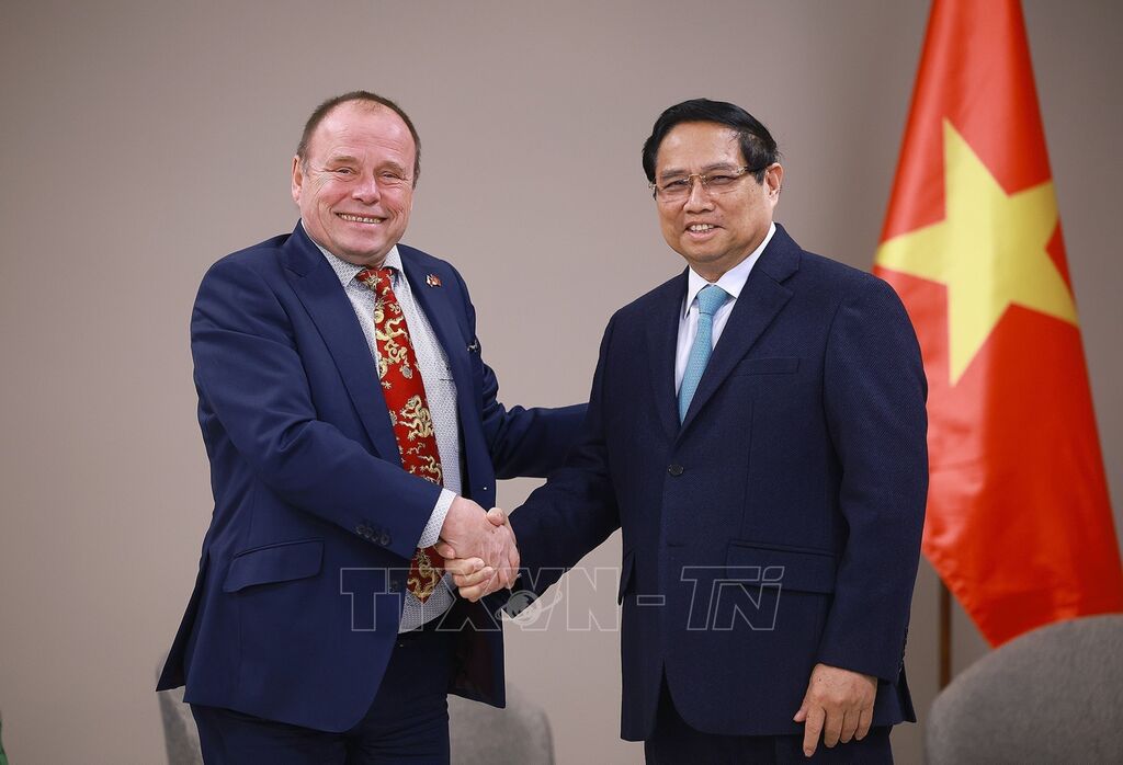 Vui mừng gặp Chủ tịch Hội Hữu nghị Séc - Việt Nam Milos Kusy và những người bạn thân thiết, gắn bó với Việt Nam, Thủ tướng Chính phủ Phạm Minh Chính khẳng định nhân dân Việt Nam luôn trân trọng tình cảm và sự ủng hộ quý báu và giúp đỡ chí tình của nhân dân Séc dành cho Việt Nam.