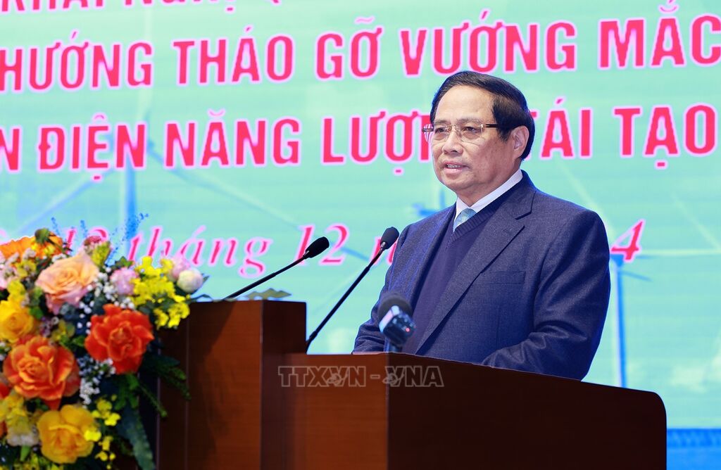 Chiều 12/12, chủ trì Hội nghị công bố và triển khai Nghị quyết của Chính phủ về chủ trương, phương hướng tháo gỡ vướng mắc, khó khăn cho các dự án điện năng lượng tái tạo, Thủ tướng Chính phủ Phạm Minh Chính yêu cầu hoàn thành việc tháo gỡ vướng mắc, khó khăn cho các dự án trong tháng 1/2025 để tránh lãng phí tài nguyên của đất nước, nguồn lực của xã hội, góp phần vào đảm bảo nguồn điện cho phát triển.