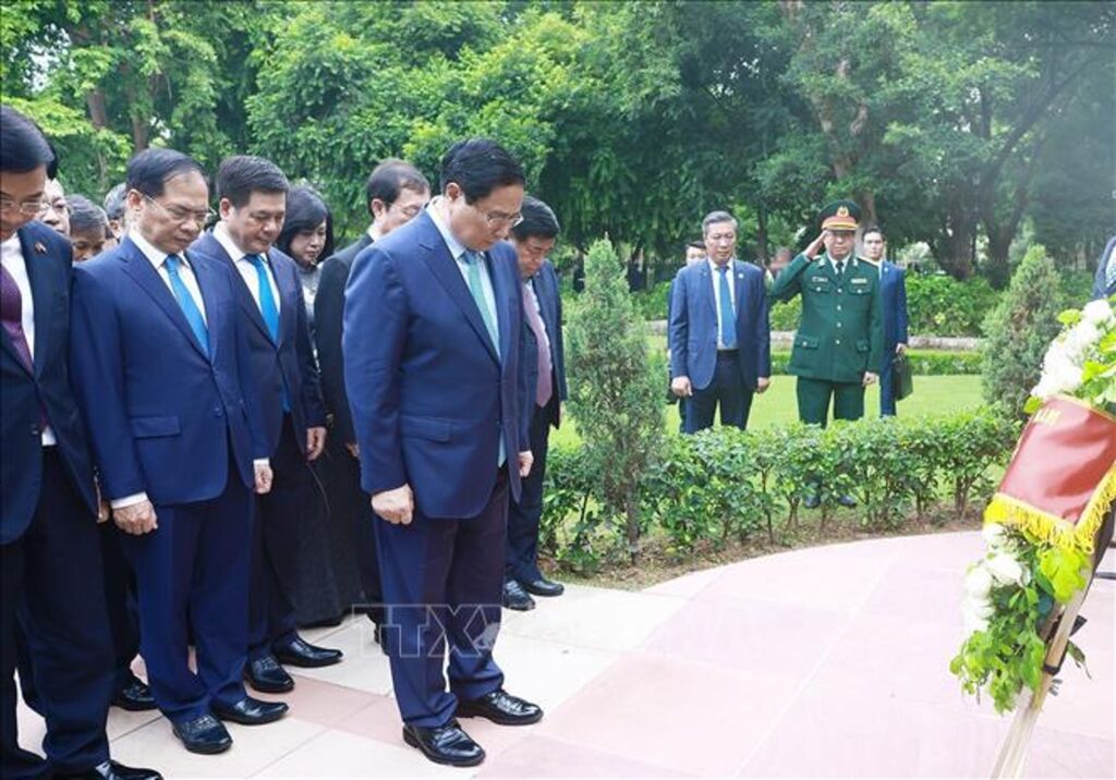 * Dâng hoa, thành kính tưởng niệm Chủ tịch Hồ Chí Minh trước bức tượng Người tại Công viên G20 ở thủ đô New Delhi, Thủ tướng Phạm Minh Chính và Đoàn công tác nguyện nỗ lực, phấn đấu, tiếp tục đưa quan hệ Đối tác Chiến lược Toàn diện Việt Nam - Ấn Độ ngày càng đi vào chiều sâu, thực chất, hiệu quả; làm sâu sắc hơn quan hệ truyền thống tốt đẹp giữa hai dân tộc đã trải qua quá trình lịch sử lâu dài hơn 2.000 năm, được hai lãnh tụ vĩ đại là Chủ tịch Hồ Chí Minh và Thủ tướng Ấn Độ Jawaharlal Nehru gây dựng và vun đắp.