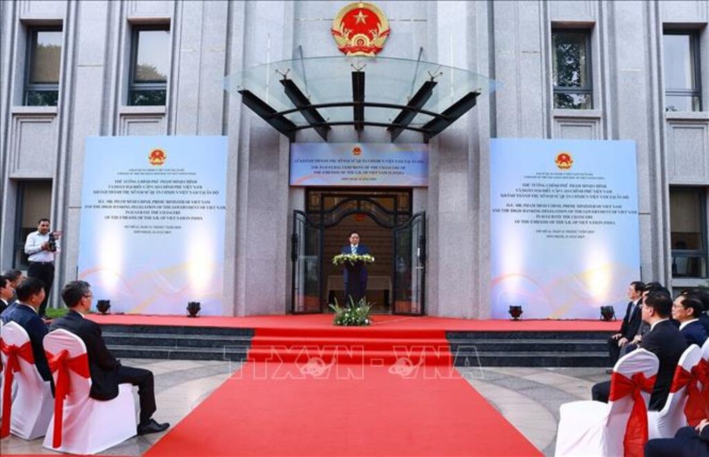 Nhấn mạnh Đảng, Nhà nước đặc biệt coi trọng và chăm lo cho công tác ngoại giao, cả về năng lực, trí tuệ và cơ sở vật chất, điều kiện làm việc, chế độ cho cán bộ, nhân viên Đại sứ quán, trong đó có Đại sứ quán Việt Nam tại Ấn Độ, Thủ tướng Phạm Minh Chính đánh giá cao, biểu dương các bộ, ngành, đơn vị của Việt Nam và sự giúp đỡ của bạn bè Ấn Độ để công trình trụ sở Đại sứ quán Việt Nam tại Ấn Độ đi vào hoạt động, phục vụ công tác.