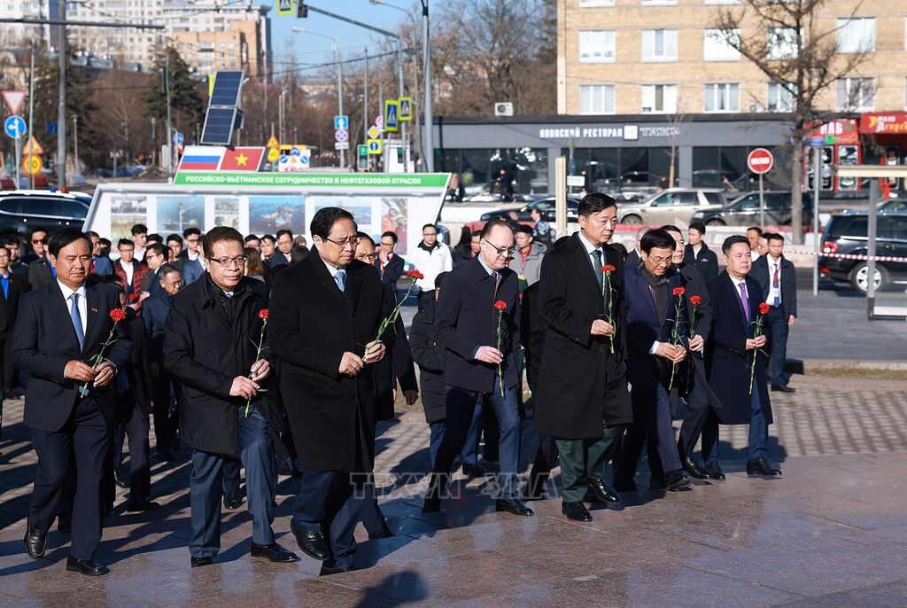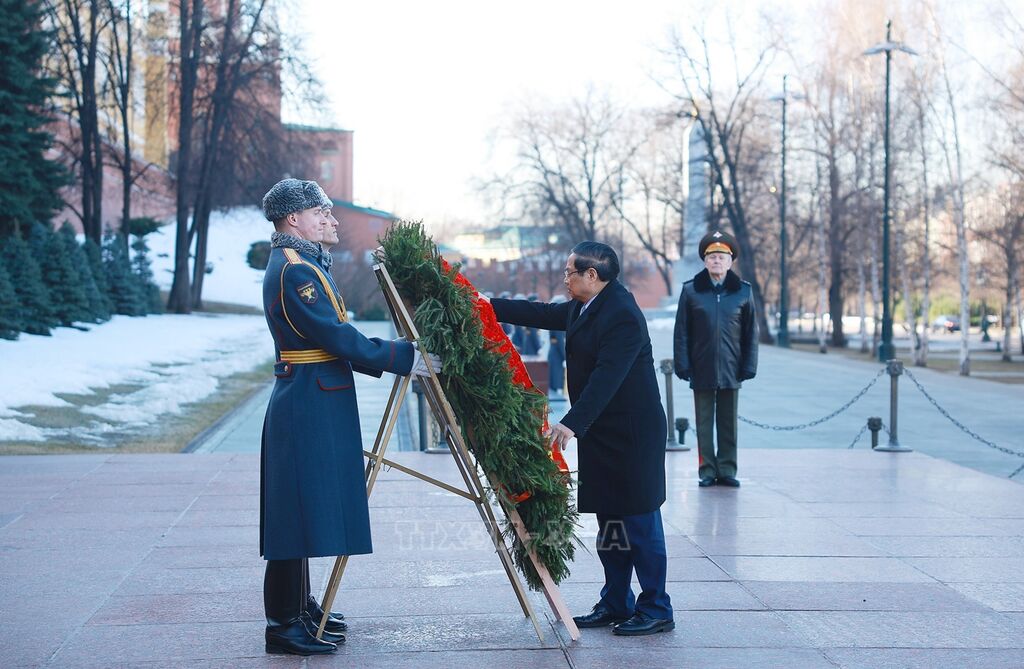 Theo đặc phái viên TTXVN, trong chương trình thăm chính thức Liên bang Nga, sáng 23/3 theo giờ địa phương, tại thủ đô Moskva, Thủ tướng Chính phủ Phạm Minh Chính và Đoàn công tác đã tới đặt hoa tại Tượng đài Chủ tịch Hồ Chí Minh và Tượng đài liệt sĩ vô danh.