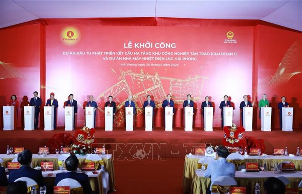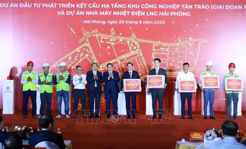 Tối 26/9, Thủ tướng Chính phủ Phạm Minh Chính đã dự Lễ Khởi công Dự án đầu tư phát triển kết cấu hạ tầng Khu Công nghiệp Tân Trào (giai đoạn 1) và Dự án Nhà máy Nhiệt điện LNG Hải Phòng - hai công trình chào mừng Đại hội Đại biểu Đảng bộ thành phố Hải Phòng lần thứ I, nhiệm kỳ 2025 - 2030.