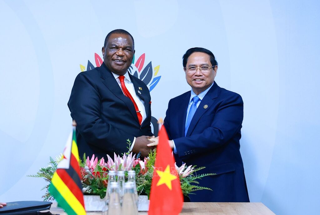 * Tiếp Phó Tổng thống Zimbabwe Constantino Chiwenga, Thủ tướng Phạm Minh Chính khẳng định Việt Nam luôn coi trọng phát triển quan hệ truyền thống với các quốc gia châu Phi, trong đó có Zimbabwe. Thủ tướng đề nghị hai bên cần tăng cường trao đổi đoàn các cấp, nhất là cấp cao; mở rộng thị trường xuất nhập khẩu, đẩy mạnh hợp tác trong các lĩnh vực giàu tiềm năng như nông nghiệp, viễn thông, 5G, khai thác khoáng sản, vật liệu xây dựng, dệt may, da giày. Thủ tướng cũng đề nghị hai bên sớm nghiên cứu ký kết Hiệp định Thương mại song phương, Hiệp định bảo hộ đầu tư, đồng thời mong muốn Zimbabwe ủng hộ Việt Nam triển khai đàm phán Hiệp định Thương mại Tự do (FTA) với Liên minh Thuế quan miền Nam châu Phi (SACU).