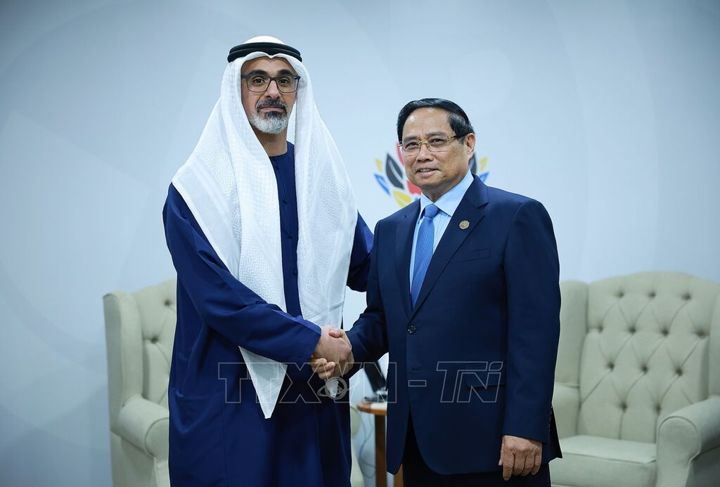 *Tại cuộc Thủ tướng Chính phủ Phạm Minh Chính gặp Hoàng thái tử Abu Dhabi, Các Tiểu vương quốc Arập thống nhất (UAE), Khaled bin Mohamed Al Nahyan, hai bên bày tỏ vui mừng về sự phát triển tích cực của quan hệ Việt Nam – UAE, nhất là sau 1 năm hai nước thiết lập quan hệ Đối tác toàn diện và ký kết Hiệp định đối tác kinh tế toàn diện Việt Nam – UAE (CEPA) trong khuôn khổ chuyến thăm chính thức của Thủ tướng đến UAE tháng 10/2024.