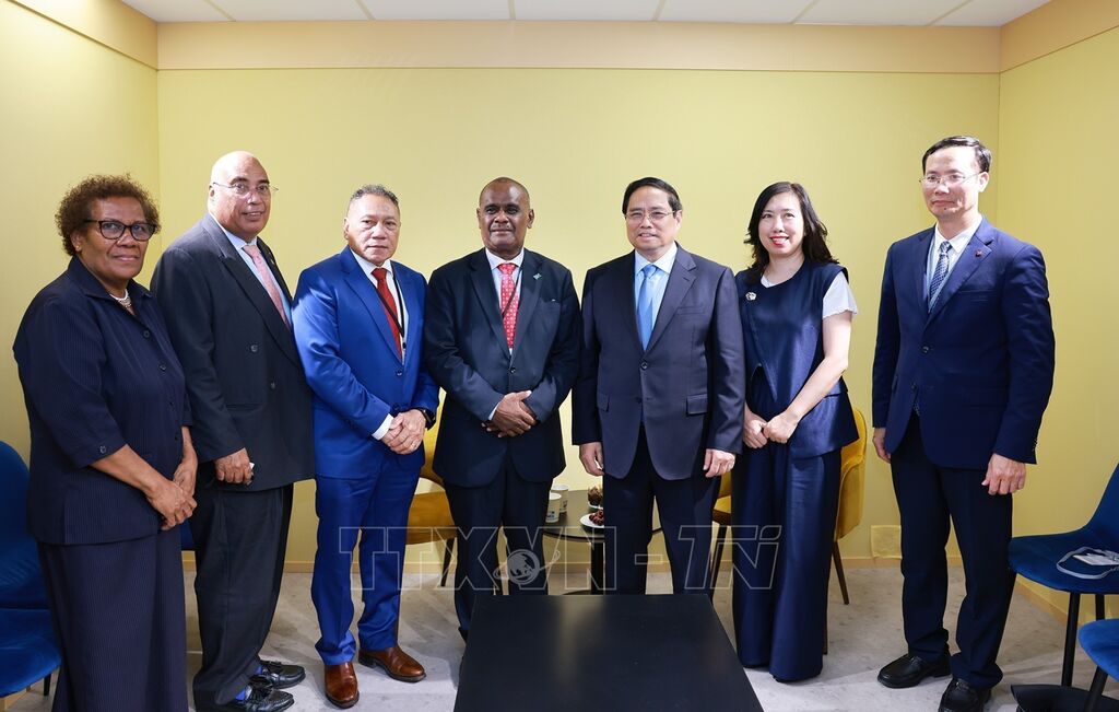 Nhân dịp tham dự Hội nghị Cấp cao lần thứ 3 của Liên hợp quốc về Đại dương (UNOC 3) tại Nice (Pháp), ngày 9/6 (giờ địa phương), Thủ tướng Chính phủ Phạm Minh Chính đã gặp Thủ tướng Quần đảo Solomon Jeremiah Manele.