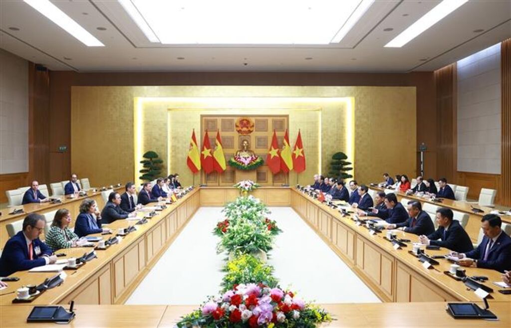 Trong không khí thân mật, hữu nghị, Thủ tướng Chính phủ Phạm Minh Chính nhiệt liệt chào mừng Thủ tướng Pedro Sánchez cùng đoàn đại biểu cấp cao Tây Ban Nha; khẳng định ý nghĩa quan trọng của chuyến thăm đầu tiên của người đứng đầu Chính phủ Tây Ban Nha kể từ khi hai nước thiết lập quan hệ ngoại giao; tin tưởng chuyến thăm sẽ mở ra giai đoạn phát triển mới, đưa quan hệ Đối tác chiến lược Việt Nam - Tây Ban Nha lên tầm cao mới.