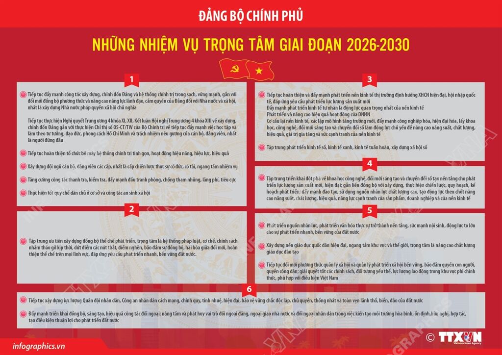 Bước vào nhiệm kỳ 2026-2030, tình hình thế giới dự báo tiếp tục diễn biến phức tạp, khó lường; cạnh tranh chiến lược ngày càng gay gắt; kinh tế thế giới tiếp tục biến động mạnh, tiềm ẩn nhiều rủi ro. Ở trong nước, chúng ta tiếp tục gặp những tác động, ảnh hưởng tiêu cực từ bên ngoài, những hạn chế, bất cập nội tại và những vấn đề an ninh phi truyền thống, dịch bệnh, thiên tai, biến đổi khí hậu, an ninh mạng… ngày càng nặng nề hơn. Nhìn chung khó khăn, thách thức tiếp tục nhiều hơn thời cơ, thuận lợi. Bối cảnh đó đòi hỏi Đảng bộ Chính phủ cần tiếp tục nỗ lực nhiều hơn nữa, quyết tâm cao hơn nữa, hành động quyết liệt hơn nữa để góp phần thực hiện thành công mục tiêu chiến lược 100 năm thành lập Đảng vào năm 2030 và tạo nền tảng vững chắc hướng tới mục tiêu chiến lược 100 năm thành lập nước vào năm 2045.