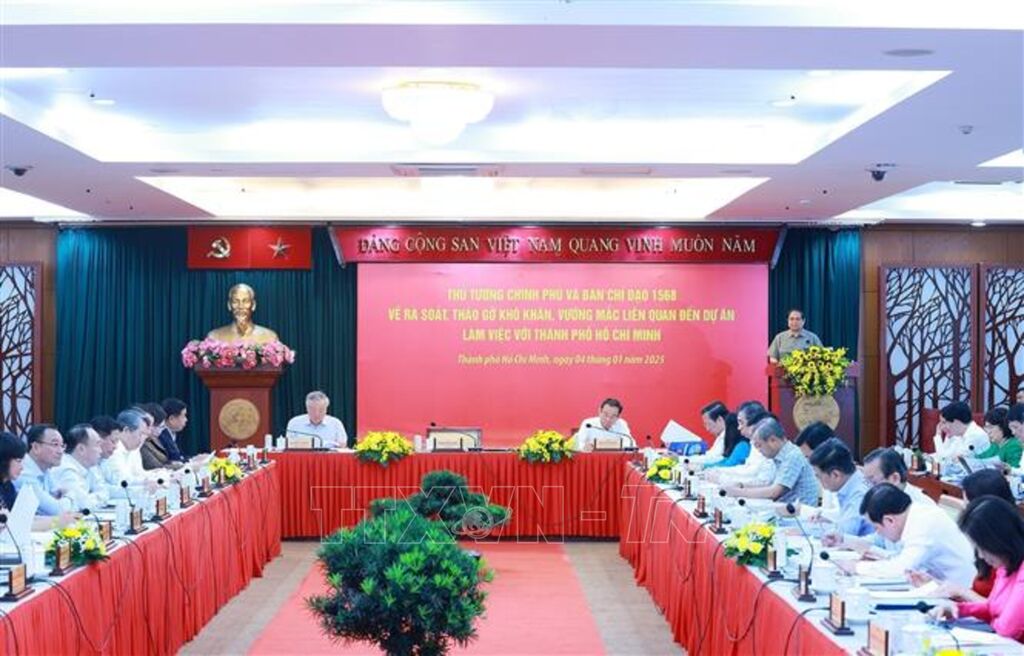Chiều 4/1, Thủ tướng Chính phủ Phạm Minh Chính và Ban Chỉ đạo 1568 về rà soát, tháo gỡ khó khăn, vướng mắc liên quan đến các dự án (Ban Chỉ đạo) đã làm việc với Thành phố Hồ Chí Minh để rà soát, tháo gỡ khó khăn, vướng mắc liên quan đến các dự án trên địa bàn Thành phố.