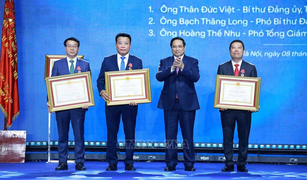 Thay mặt lãnh đạo Đảng, Nhà nước trao Huân chương Lao động hạng Nhất của Đảng, Nhà nước tặng Tổng Công ty May 10 và Huân chương Lao động hạng Ba tặng các cá nhân xuất sắc của May 10; phát biểu tại sự kiện, thay mặt Tổng Bí thư Tô Lâm gửi tới Lễ kỷ niệm lời chúc tốt đẹp nhất, Thủ tướng Chính phủ Phạm Minh Chính nhấn mạnh, nhìn lại chặng đường 80 năm phát triển đất nước, từ một nước nghèo nàn, lạc hậu sau chiến tranh, Việt Nam đã vươn mình mạnh mẽ, đạt mức tăng trưởng GDP 8,02% năm 2025, vượt xa các dự báo đầu năm; GDP bình quân đầu người đạt 5.026 USD, chính thức vượt ngưỡng 5.000 USD, đưa quốc gia bước vào nhóm thu nhập trung bình cao.