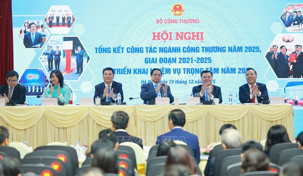 Chiều 19/12, Thủ tướng Chính phủ Phạm Minh Chính dự Hội nghị tổng kết công tác ngành CôngThương năm 2025, giai đoạn 2021 - 2025 và triển khai nhiệm vụ trọng tâm năm 2026 do Bộ Công Thương tổ chức trực tiếp tại trụ sở bộ và trực tuyến với các Thương vụ Việt Nam tại nước ngoài. Cùng dự Hội nghị có: Chủ nhiệm Ủy ban Kinh tế và Tài chính của Quốc hội Phan Văn Mãi; Bộ trưởng Bộ Công Thương Nguyễn Hồng Diên; lãnh đạo các ban, bộ, ngành Trung ương.
