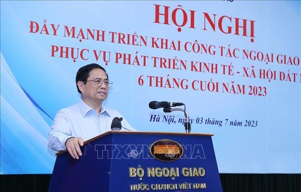 TTXVN - Chiều tối 3/7, Thủ tướng Chính phủ Phạm Minh Chính đã dự Hội nghị đẩy mạnh triển khai công tác ngoại giao kinh tế phục vụ phát triển kinh tế - xã hội 6 tháng cuối năm 2023 do Bộ Ngoại giao tổ chức. Hội nghị được tổ chức theo hình thức trực tuyến, kết nối từ Việt Nam với 94 điểm cầu cơ quan đại diện Việt Nam ở nước ngoài.