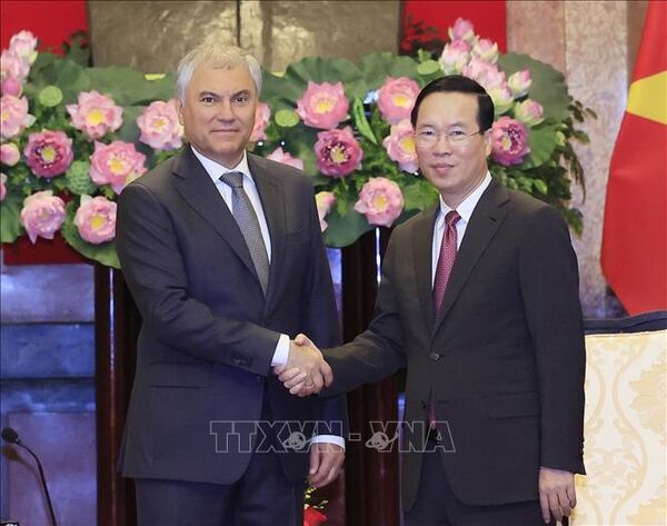 Chủ tịch Quốc hội Vương Đình Huệ đón, hội đàm với Chủ tịch Duma Quốc gia Quốc hội Liên bang NgaChủ tịch Quốc hội Vương Đình Huệ đánh giá cao việc thành phần Đoàn thăm Việt Nam lần này; nhấn mạnh, đây là cơ hội quan trọng để thảo luận các biện pháp tăng cường quan hệ giữa Quốc hội hai nước và hai nước.