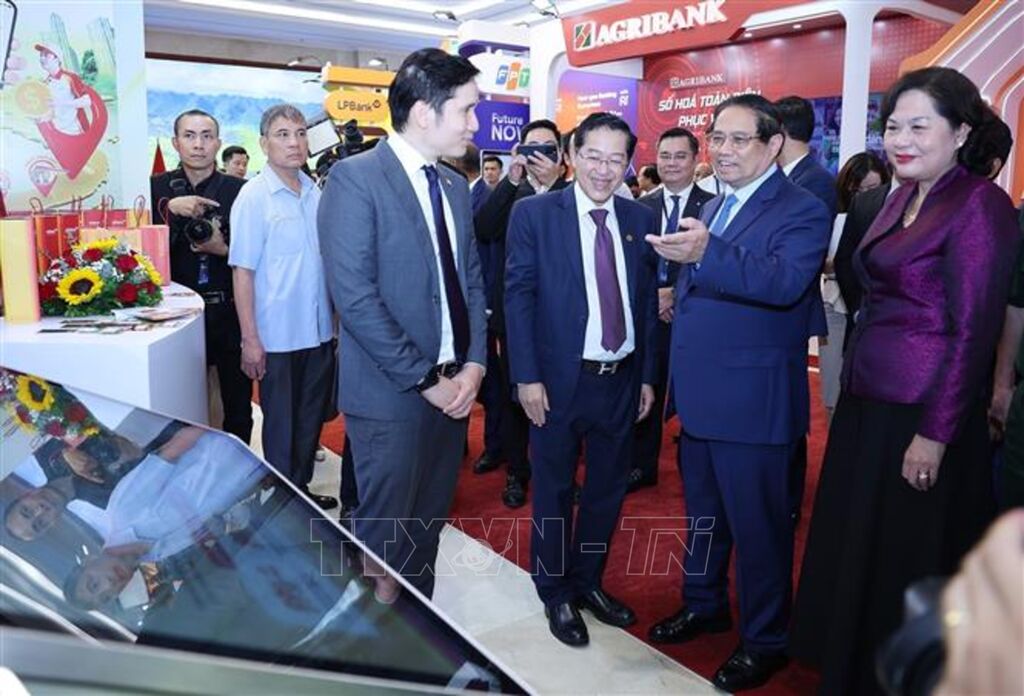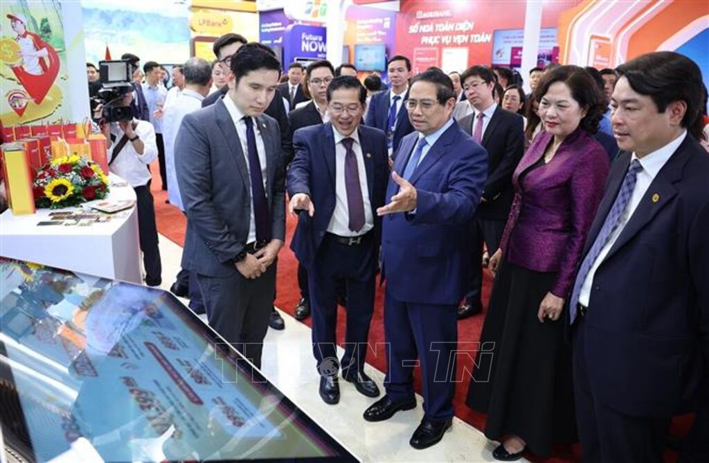 Phát biểu tại sự kiện, Thủ tướng Chính phủ Phạm Minh Chính bày tỏ vui mừng khi tham quan triển lãm trưng bày sản phẩm dịch vụ, ứng dụng chuyển đổi số trong hoạt động ngân hàng; cho rằng thông qua các sản phẩm này cho thấy quyết tâm rất cao, sự vào cuộc rất tích cực, hiệu quả của các ngân hàng, đặc biệt là chuyển đổi số với tinh thần lấy người dân và doanh nghiệp là trung tâm, là chủ thể để phục vụ.