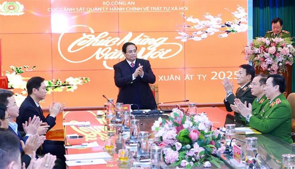 Nói chuyện với cán bộ, chiến sĩ của Cục Cảnh sát quản lý hành chính về trật tự xã hội, Thủ tướng Chính phủ Phạm Minh Chính biểu dương, chúc mừng thành tựu mà Cục C06 đã đạt được trong năm 2024, nhất là trong việc triển khai Đề án 06, góp phần tạo thuận lợi cho người dân, doanh nghiệp, giảm tham nhũng vặt, cải cách thủ tục hành chính.