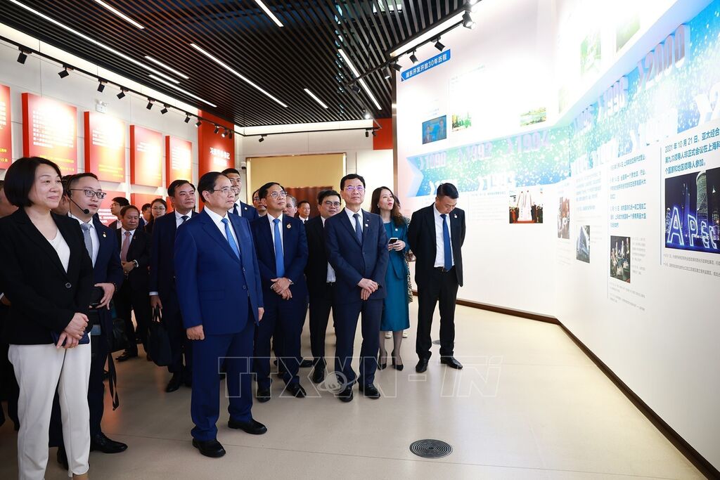 * Chiều cùng ngày, Thủ tướng Phạm Minh Chính đã tham quan triển lãm chủ đề Phát triển và Mở cửa Phố Đông, Thượng Hải nằm trong Phòng triển lãm Phố Đông.