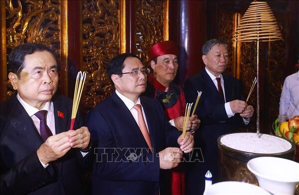 TTXVN - Sáng 18/4, sau khi dự lễ dâng hương ngày Giỗ Tổ Hùng Vương, Thủ tướng Chính phủ Phạm Minh Chính đã thăm Trung tâm thông tin chỉ huy Công an tỉnh và làm việc với Công an tỉnh Phú Thọ; khảo sát công trường xây dựng dự án nhà văn hóa nghệ thuật tỉnh Phú Thọ.