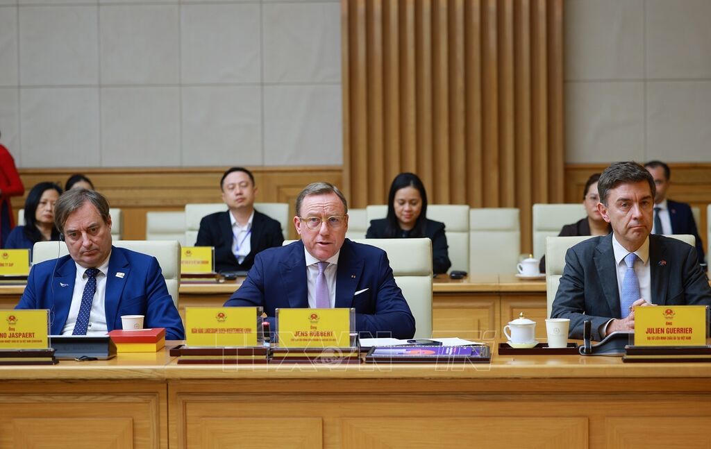 Chiều 27/11, tại Trụ sở Chính phủ, Thủ tướng Chính phủ Phạm Minh Chính đã làm việc với Hội đồng Kinh doanh châu Âu - ASEAN (EU - ABC) và Hiệp hội Doanh nghiệp châu Âu tại Việt Nam (EuroCham) do Chủ tịch EU - ABC Jens Rübbert và Chủ tịch EuroCham Bruno Jaspaert dẫn đầu.