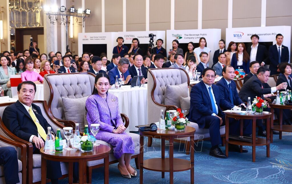 Trong chương trình thăm chính thức Việt Nam và đồng chủ trì họp Nội các chung Việt Nam - Thái Lan lần thứ 4 của Thủ tướng Vương quốc Thái Lan Paetongtarn Shinawatra, chiều 16/5, Thủ tướng Phạm Minh Chính và Thủ tướng Paetongtarn Shinawatra đã đồng chủ trì Diễn đàn Doanh nghiệp Việt Nam - Thái Lan với chủ đề “Một cộng một trên ba kết nối”.
