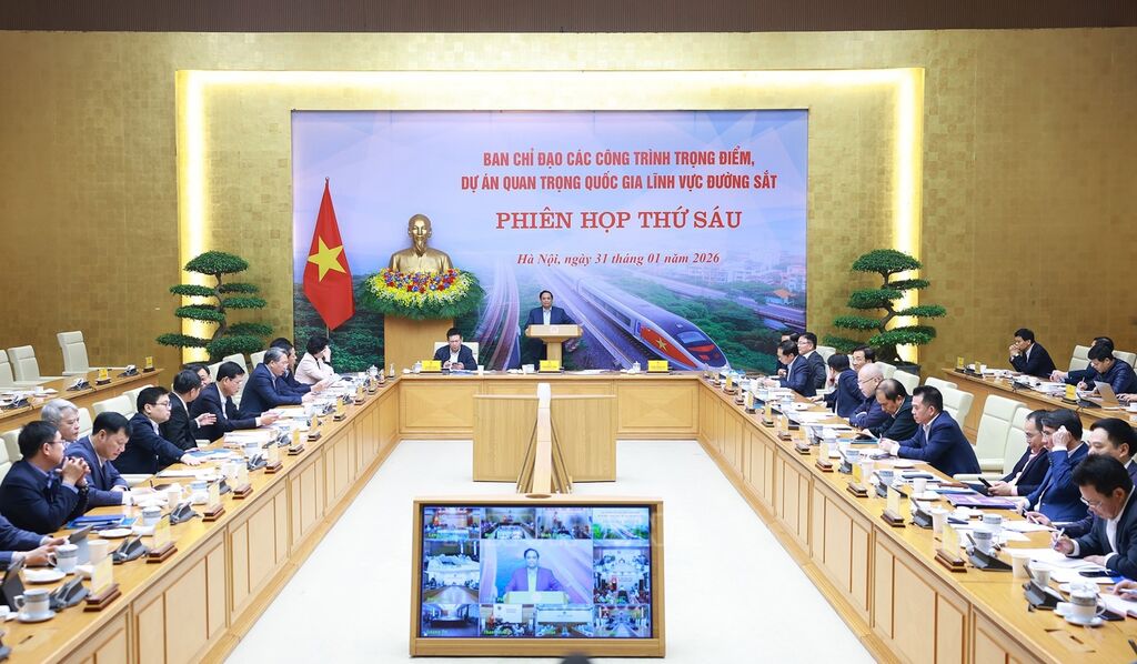 Chiều 31/1, tại Trụ sở Chính phủ, Thủ tướng Phạm Minh Chính, Trưởng ban Chỉ đạo các công trình trọng điểm, dự án quan trọng quốc gia lĩnh vực đường sắt chủ trì phiên họp thứ 6 của Ban Chỉ đạo; trực tuyến với 18 tỉnh, thành phố có các dự án đường sắt đi qua.
