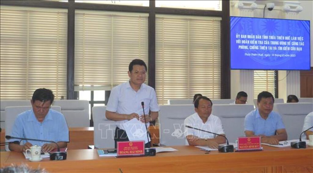 TTXVN - Chiều 10/8, Đoàn công tác của Ban Chỉ đạo Quốc gia về phòng, chống thiên tai đã làm việc với Ủy ban nhân dân tỉnh Thừa Thiên - Huế về phòng, chống thiên tai và tìm kiếm cứu nạn.