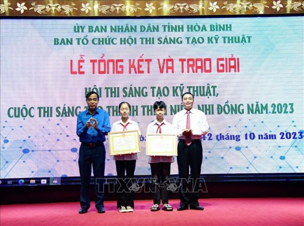 TTXVN - Tại Lễ trao giải Hội thi sáng tạo kỹ thuật thanh, thiếu niên nhi đồng tỉnh Hòa Bình năm 2023, ngày 12/10, Phó Chủ tịch UBND tỉnh Hòa Bình Đinh Công Sứ nhấn mạnh, cuộc thi được tổ chức nhằm thúc đẩy phong trào thi đua lao động sáng tạo, khai thác, phát huy tiềm năng sáng tạo to lớn, nhanh chóng ứng dụng tiến bộ khoa học công nghệ vào mọi lĩnh vực sản xuất và đời sống, góp phần thúc đẩy sự nghiệp công nghiệp hóa, hiện đại hóa của tỉnh.