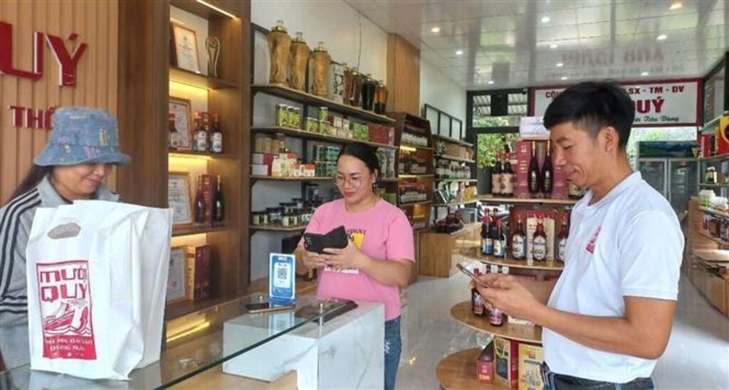 Tại huyện Bình Sơn, để tạo hiệu ứng tích cực, thúc đẩy các hộ kinh doanh và người tiêu dùng sử dụng phương thức giao dịch thanh toán trực tuyến, tự tin thụ hưởng những tiện ích mà công nghệ số mang lại, từ năm 2023, địa phương đã triển khai thí điểm mô hình tuyến đường thanh toán không dùng tiền mặt tại đường Tế Hanh, thị trấn Châu Ổ. Tại tuyến đường này, các hộ sản xuất, kinh doanh đều đăng ký triển khai. Ngân hàng hỗ trợ mở tài khoản, mã QR, hướng dẫn người dân thực hiện giao dịch, thanh toán qua tài khoản ngân hàng, ví điện tử.