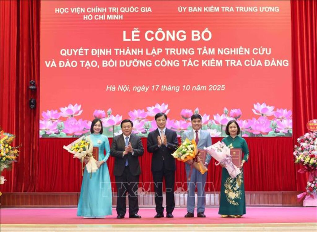 Chiều 17/10, tại Hà Nội đã diễn ra Lễ ký Quy chế phối hợp giữa Học viện Chính trị Quốc gia Hồ Chí Minh và Ủy ban Kiểm tra Trung ương; Công bố Quyết định thành lập Trung tâm Nghiên cứu và Đào tạo, bồi dưỡng công tác kiểm tra của Đảng (gọi tắt là Trung tâm) thuộc Viện Xây dựng Đảng, Học viện Chính trị quốc gia Hồ Chí Minh. Buổi lễ thực hiện với hình thức trực tiếp kết hợp trực tuyến.