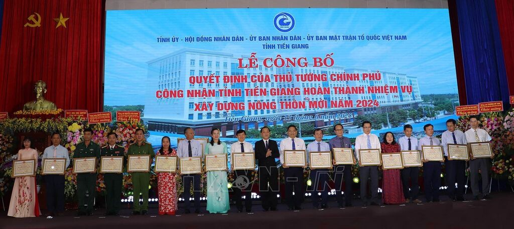 Ngày 13/6, UBND tỉnh Tiền Giang long trọng tổ chức lễ công bố Quyết định của Thủ tướng Chính phủ công nhận tỉnh Tiền Giang hoàn thành nhiệm vụ xây dựng nông thôn mới năm 2024, về trước kế hoạch 1 năm so với lộ trình đề ra.