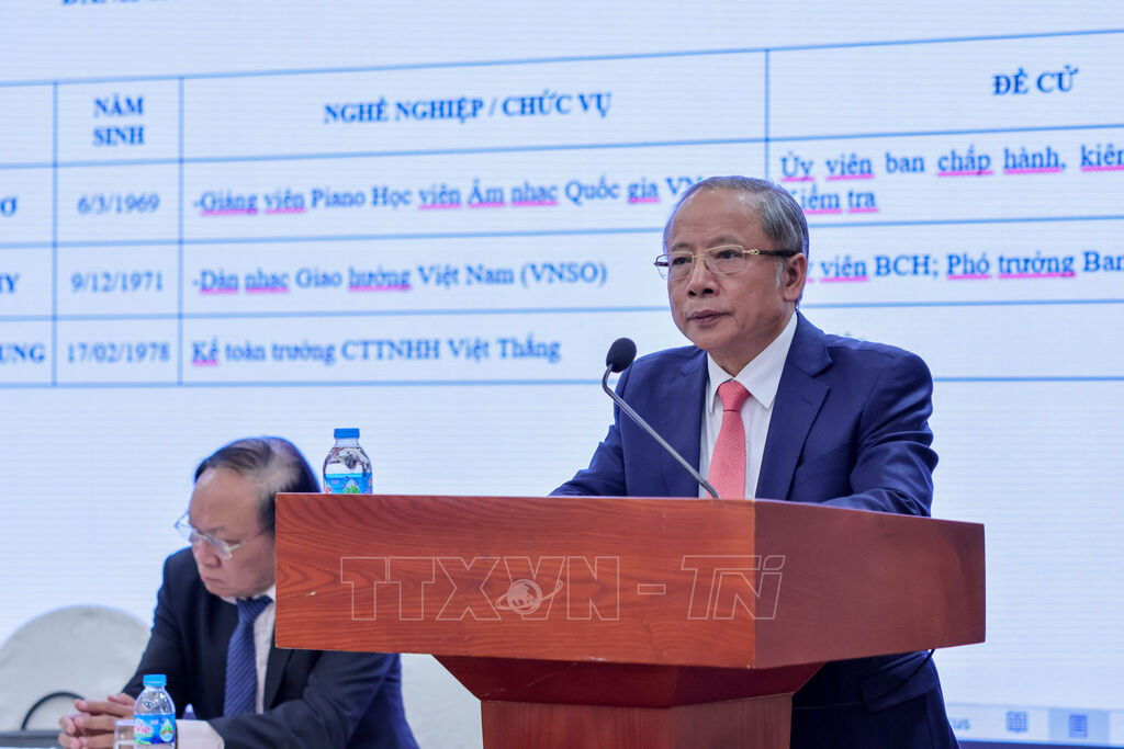 Đại hội cũng đã tiến hành bầu cử dân chủ, đúng quy chế, thống nhất bầu 15 thành viên Ban Chấp hành, 7 thành viên Ban Thường vụ và 3 thành viên Ban Kiểm tra. Tiến sĩ Nguyễn Văn Thân (sinh năm 1955), đại biểu Quốc hội Việt Nam khóa XIV - XV, Ủy viên Ủy ban Trung ương Mặt trận Tổ quốc Việt Nam, Chủ tịch Hiệp hội Doanh nghiệp nhỏ và vừa Việt Nam được bầu làm Chủ tịch Hội; Nghệ sĩ Nhân dân Phạm Ngọc Khôi giữ chức Phó Chủ tịch Thường trực; nhạc sĩ Trần Lệ Chiến là Phó Chủ tịch kiêm Tổng thư ký Hội.
