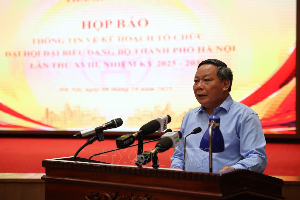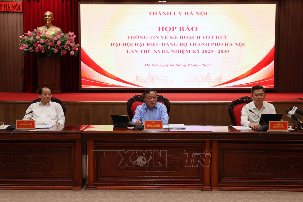 Ngày 8/10, Thành ủy Hà Nội tổ chức họp báo thông tin về kế hoạch tổ chức Đại hội đại biểu Đảng bộ thành phố lần thứ XVIII, nhiệm kỳ 2025-2030.