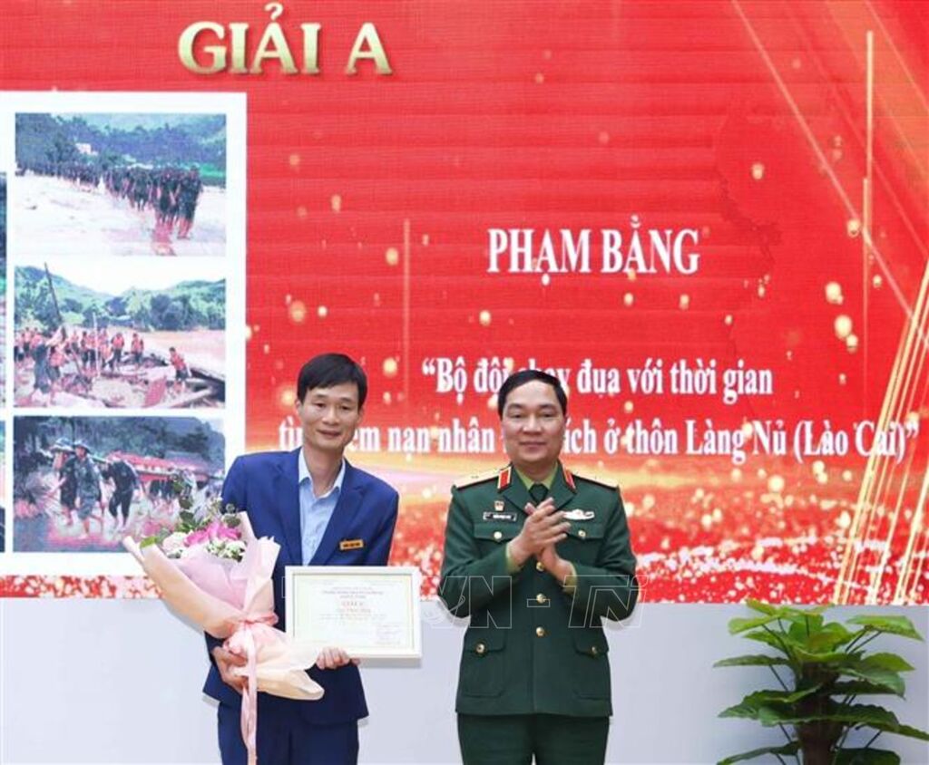 Trong đó, giải A hạng mục ảnh đơn thuộc về tác giả Nguyễn Mạnh Quân (Báo Dân Trí) với tác phẩm “Đại tướng trong vòng tay nhân dân”. Giải A hạng mục ảnh bộ thuộc về tác giả Phạm Bằng (Báo Lào Cai) với tác phẩm “Bộ đội chạy đua với thời gian, tìm kiếm nạn nhân mất tích ở thôn Làng Nủ (Lào Cai)”.