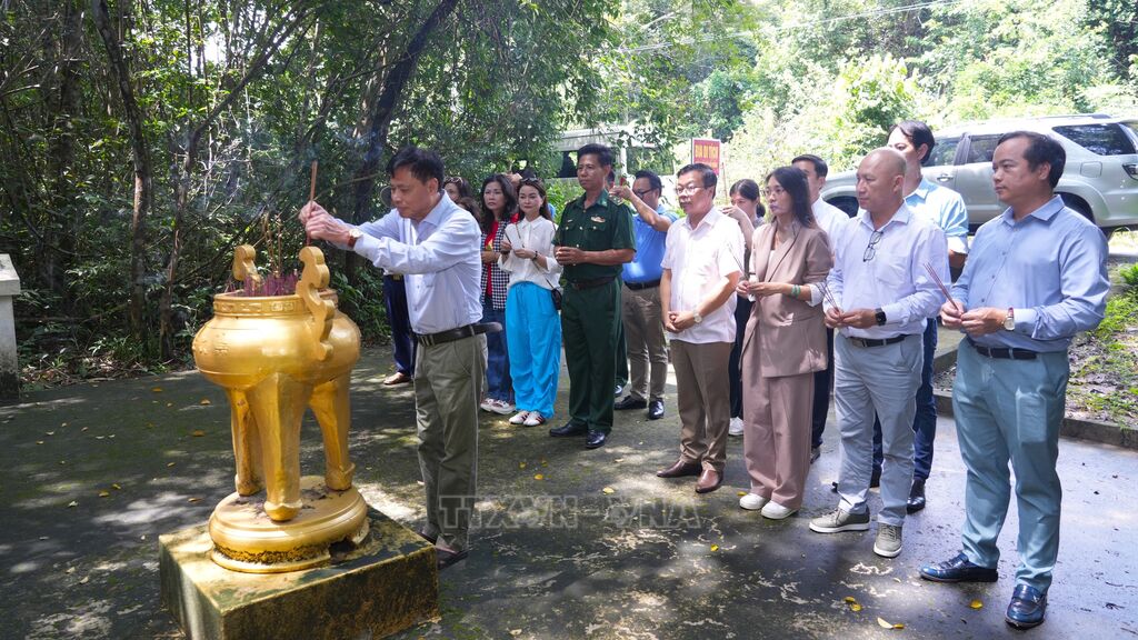 Đoàn đã dâng hương, dâng hoa lên Bia Thông tấn xã Giải phóng - nơi phát đi bản tin đầu tiên của Thông tấn xã Giải phóng, đánh dấu sự có mặt của cơ quan tiền tuyến trong kháng chiến chống đế quốc Mỹ của Việt Nam Thông tấn xã (nay là Thông tấn xã Việt Nam) tại chiến trường miền Nam. Các đại biểu đã dành phút mặc niệm, tưởng nhớ các Anh hùng liệt sỹ đã hiến dâng trọn tuổi thanh xuân, dũng cảm chiến đấu để “làn sóng điện không bao giờ tắt”, góp phần làm rạng danh truyền thống anh hùng của Thông tấn xã Việt Nam, anh dũng hy sinh vì độc lập, tự do của dân tộc, hạnh phúc nhân dân.
