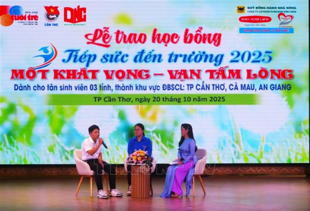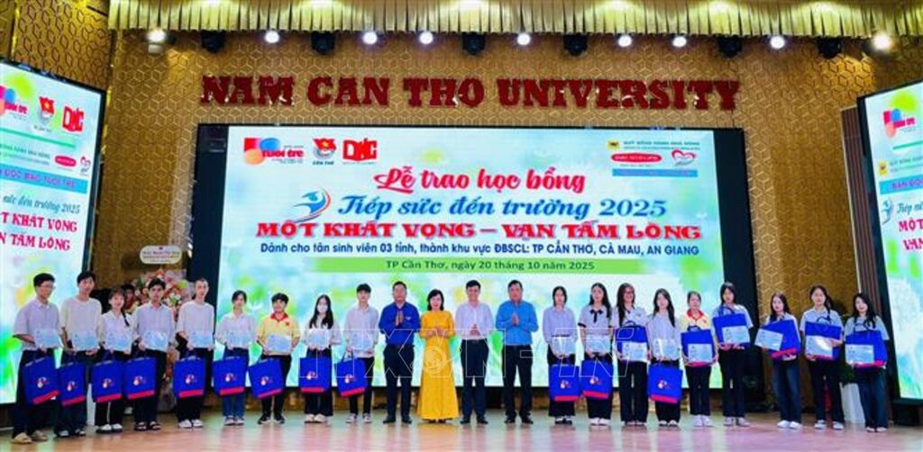 Ngày 20/10, Báo Tuổi Trẻ phối hợp với Thành đoàn Cần Thơ, Trường Đại học Nam Cần Thơ tổ chức Lễ trao học bổng “Tiếp sức đến trường” năm 2025 với chủ đề “Một khát vọng - Vạn tấm lòng”. Chương trình nhằm hỗ trợ tân sinh viên có hoàn cảnh khó khăn, tiếp thêm nghị lực để các em vững bước trên con đường học tập.