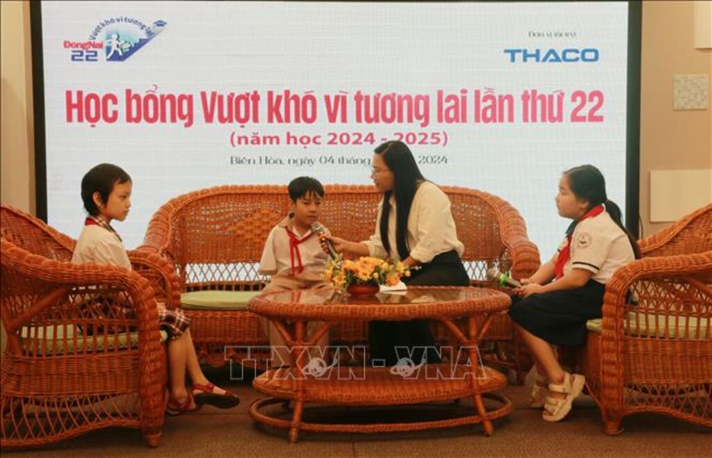 Học bổng năm nay do Báo Đồng Nai phối hợp với Công ty cổ phần Tập đoàn Trường Hải (Thaco Group) tổ chức. Ông Đào Văn Tuấn, Tổng Biên tập Báo Đồng Nai cho biết, 100 em học sinh được nhận học bổng Vượt khó vì tương lai năm học 2024 - 2025 là 100 hoàn cảnh khó khăn khác nhau. Trong đó, có nhiều học sinh bị bệnh hiểm nghèo hoặc bị khuyết tật, nhiều em không chỉ thiệt thòi về điều kiện sống mà còn chịu thua thiệt cả về tinh thần. Mỗi đợt tổ chức trao học bổng cho các em học sinh là có thêm nhiều hoàn cảnh khó khăn được tiếp sức. Giá trị mỗi suất học bổng không lớn, nhưng đây sẽ là động lực giúp các em vượt qua khó khăn, tiếp tục được đến trường, xây dựng cho mình hành trang hướng đến tương lai tốt đẹp.