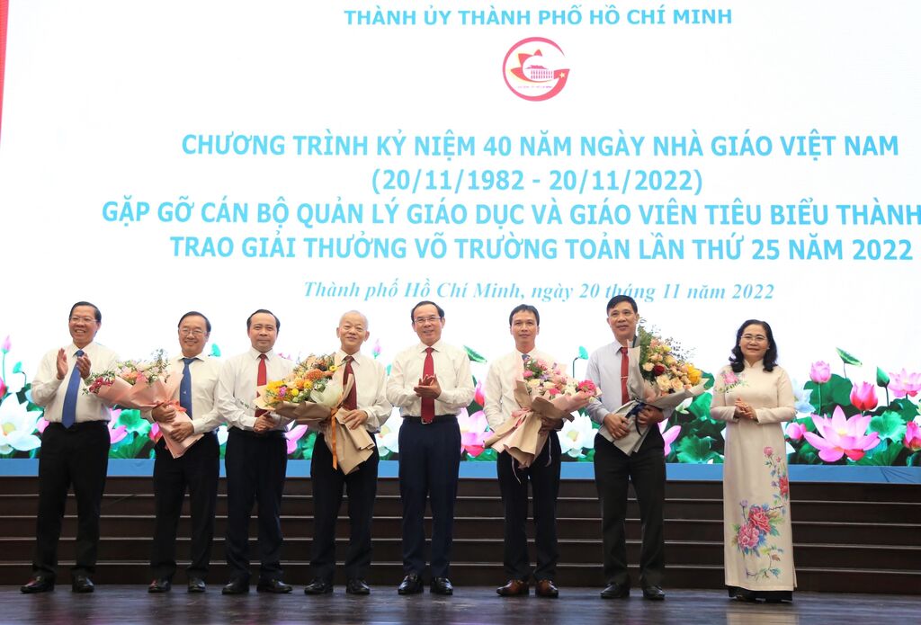 (TTXVN) Ngày 20/11, Thành phố Hồ Chí Minh kỷ niệm 40 năm Ngày Nhà giáo Việt Nam (20/11/2982 - 20/11/2022), gặp gỡ cán bộ quản lý giáo dục và giáo viên tiêu biểu; đồng thời trao giải thưởng Võ Trường Toản lần thứ 25.