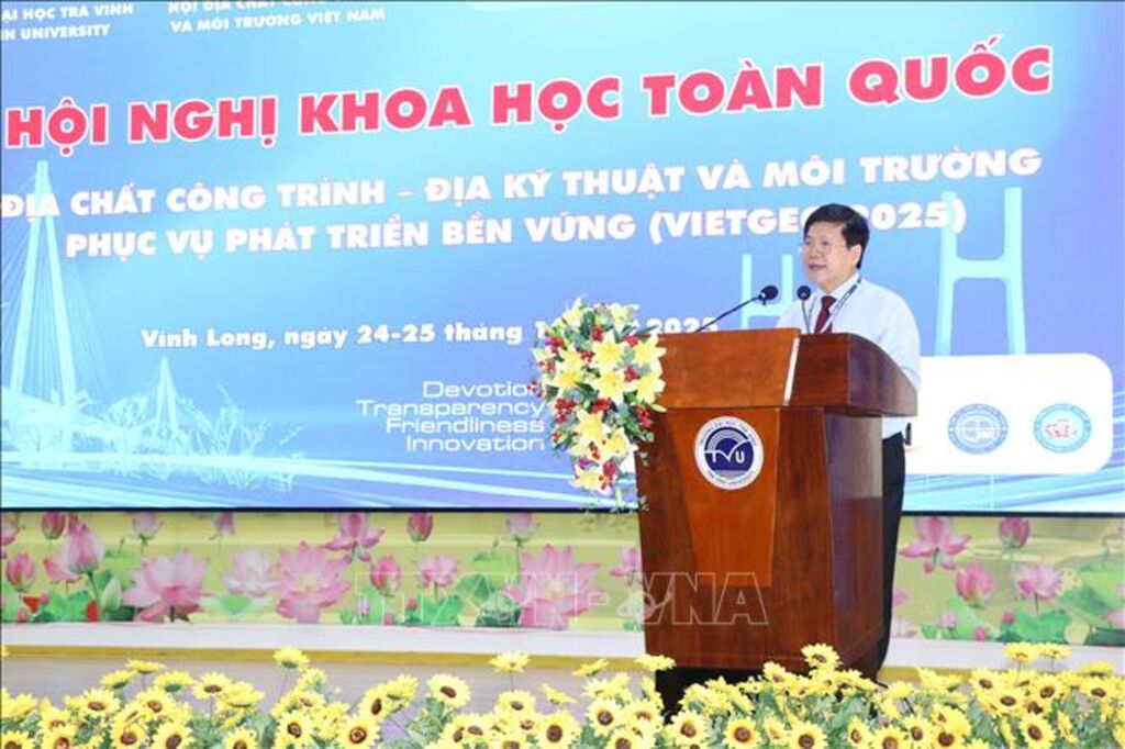 Ngày 24/10, Trường Đại học Trà Vinh (tỉnh Vĩnh Long) phối hợp với Hội Địa chất công trình và Môi trường Việt Nam tổ chức hội nghị khoa học toàn quốc “Địa chất công trình- Địa kỹ thuật và môi trường phục vụ phát triển bền vững” (VIETGEO2025). Hội nghị thu hút trên 100 nhà khoa học, giảng viên, chuyên gia, nhà nghiên cứu ở lĩnh vực địa chất, môi trường đến từ các viện, trường và các cơ quan quản lý nhà nước.