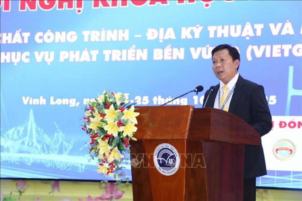 Phó Giáo sư, Tiến sĩ Tạ Đức Thịnh, Chủ tịch Hội Địa chất công trình và Môi trường Việt Nam cho biết, Đồng bằng sông Cửu Long là một trong các vùng kinh tế trọng điểm của đất nước, đóng vai trò quan trọng trong chiến lược phát triển kinh tế- xã hội và đảm bảo an ninh- quốc phòng quốc gia. Tuy nhiên, ảnh hưởng biến đổi khí hậu cực đoan khiến khu vực này ngày càng xuất hiện nhiều hiện tượng sạt lở bờ sông, bờ biển; sụt lún mặt đất; khan hiếm vật liệu xây dựng; ô nhiễm môi trường nước… Hội nghị là diễn đàn khoa học để các nhà nghiên cứu, chuyên gia và nhà quản lý chia sẻ kết quả nghiên cứu mới, cập nhật công nghệ tiên tiến, đề xuất các chính sách, giải pháp kỹ thuật phù hợp, đảm bảo phát triển bền vững hạ tầng, tài nguyên và môi trường Việt Nam.