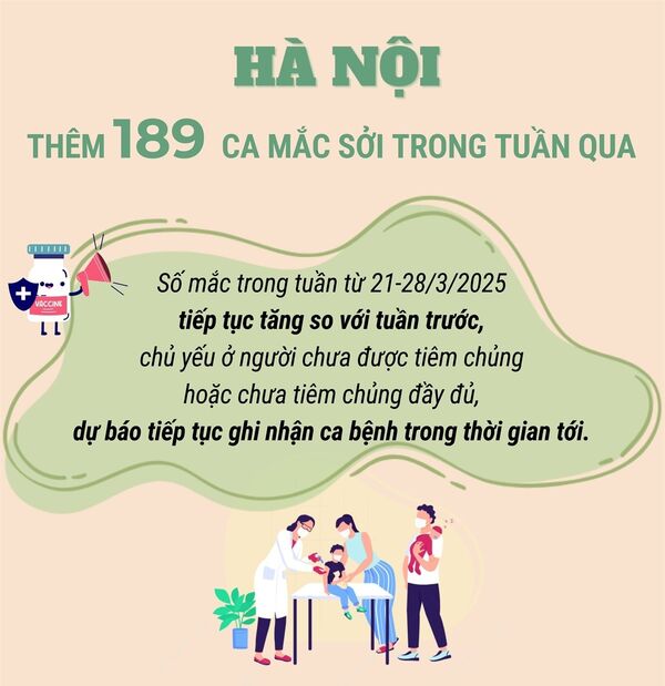 • Hà Nội thêm 189 ca mắc sởi trong tuần qua