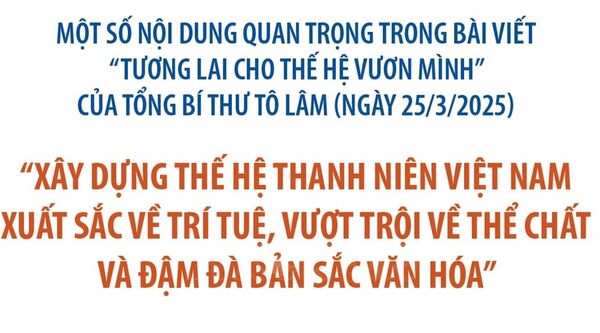 • Tổng Bí thư Tô Lâm: Xây dựng thế hệ thanh niên Việt Nam xuất sắc về trí tuệ, vượt trội về thể chất và đậm đà bản sắc văn hóa