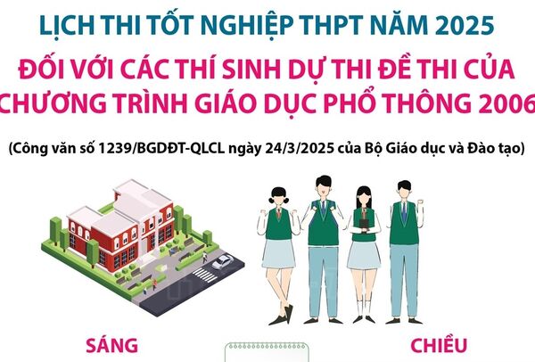 • Lịch thi tốt nghiệp THPT năm 2025 đối với các thí sinh dự thi đề thi của chương trình GDPT 2006