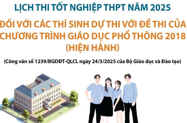 • Lịch thi tốt nghiệp THPT năm 2025 đối với các thí sinh dự thi đề thi của chương trình GDPT hiện hành
