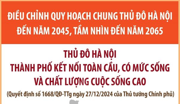 • Điều chỉnh Quy hoạch chung Thủ đô Hà Nội đến năm 2045, tầm nhìn đến năm 2065: 5 vùng đô thị