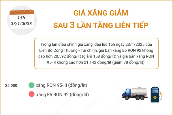 • Giá xăng giảm sau 3 lần tăng liên tiếp