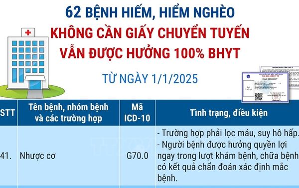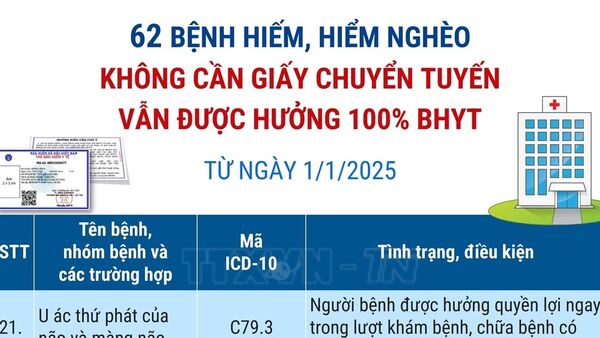 • 62 bệnh hiếm, hiểm nghèo không cần giấy chuyển tuyến vẫn được hưởng 100% bảo hiểm y tế (phần 2)