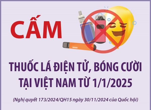 • Cấm thuốc lá điện tử, bóng cười tại Việt Nam từ 1/1/2025