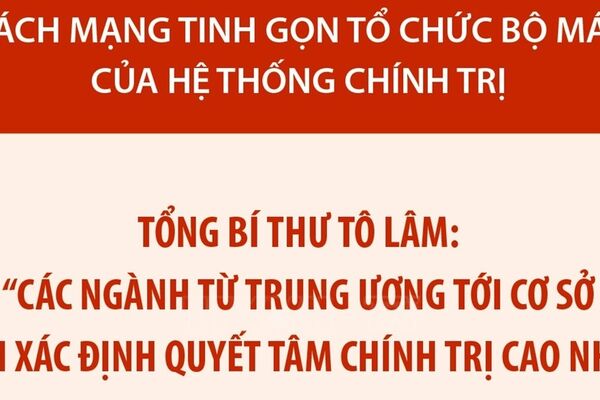 • Cách mạng tinh gọn tổ chức bộ máy của hệ thống chính trị: Vấn đề rất cấp bách, bắt buộc phải làm, càng làm sớm càng có lợi cho dân, cho nước