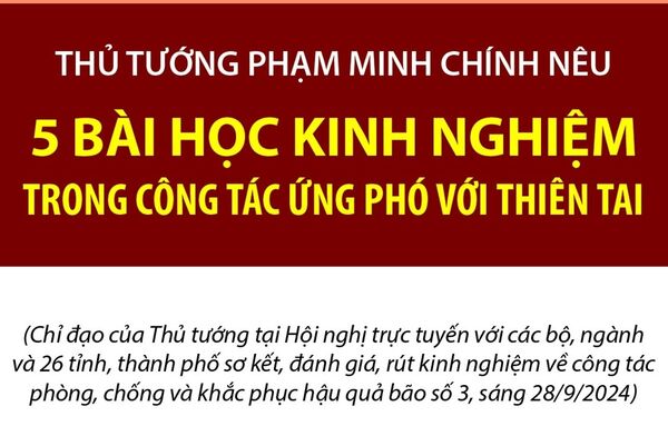 • Thủ tướng Phạm Minh Chính nêu 5 bài học kinh nghiệm trong công tác ứng phó với thiên tai